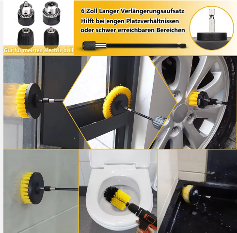 Entdecken Sie das ultimative Reinigungserlebnis mit unserem hochwertigen Bürstenset, das Ihre Reinigungsarbeiten spielend leicht macht. Unser vielseitiges Set besteht aus sieben innovativen Bürsten, die speziell entwickelt wurden, um Ihre Reinigungsaufgaben effizienter und gründlicher zu gestalten. Mit der Möglichkeit, jede Bürste an handelsübliche Akkuschrauber zu montieren, erleben Sie eine unvergleichliche Leistung und Komfort bei der Reinigung verschiedenster Oberflächen.